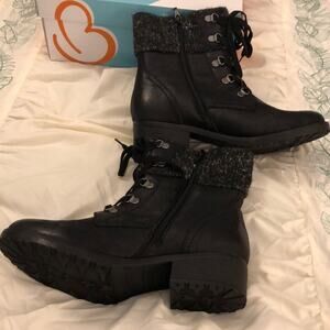 Baretraps Orley Black Boots with 1” Heel Woman Size 8.5 Sweater Cuff Hiking