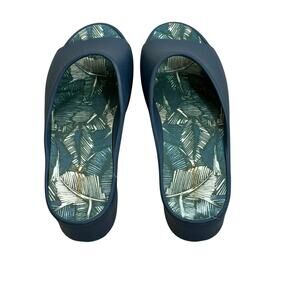 Baretraps Parvati Platform Slides Womens 10 Blue Slip On Open Toe Leaf Print
