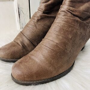 Baretraps Rikita Brown Vegan Leather Side Buckled Low Heel Booties - Size 8.5M