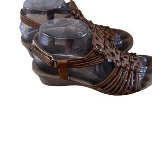Baretraps Size 8M Synthetic Strappy Wedge Sandals Intricate Weave Design Brown