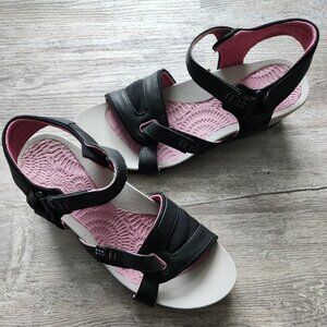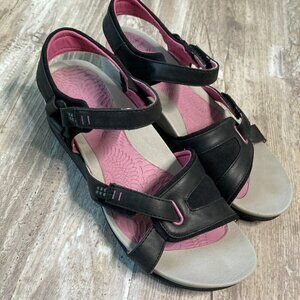 Baretraps Strappy Comfort Arch Support Wedge Black Pink Hook Loop Sandal Size 7
