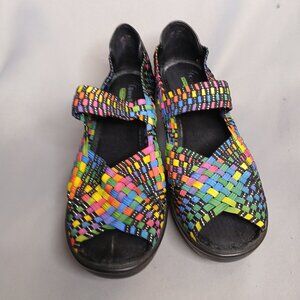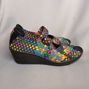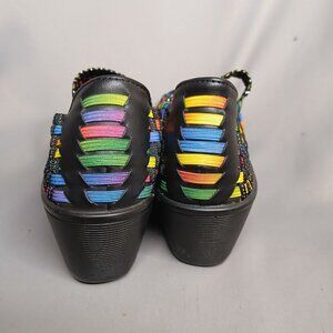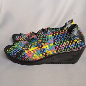 Baretraps Woven Sandals Umma Womens 8.5 Black Rainbow Summer Beach Wedges Stetch