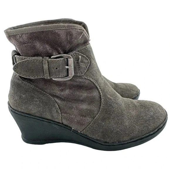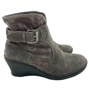 Baretraps womens ankle Omara booties size 8.5 gray suede faux fur wedge boots