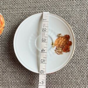 Fruit, print, apples on the cob and pineapple and strawberry on the saucer