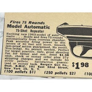 Bargain Gun Co Mini Print Ad Vintage 1963 75 Shot Repeater Model Automatic