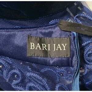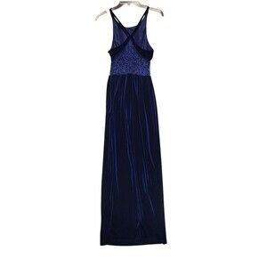 Bari Jay Dress Women's 9/10 Blue Velvelt Illusion Beaded Halter Holiday Maxi