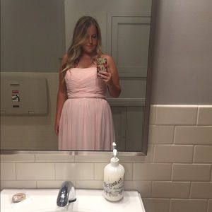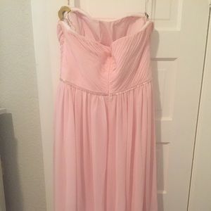 Style Number: 1474 Color: Petal Pink I am selling this floor length, strapless, bridesmaids dress that I just wore in a friend's wedding last week. There is a pretty beaded belt sewn around the waist. It is a size 16, which is about a street size 10 or 12.