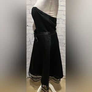 Bari Jay Strapless Belted Black Dress With Tulle Bottom Underlay Size 12