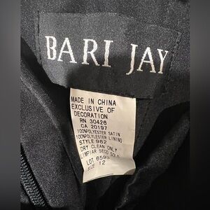 Elevate your formal attire with this stunning Bari Jay strapless dress. The dress features a solid black color, made with polyester material and a tulle fabric type. It has a sleeveless design with a zip closure and a belted waistline to accentuate your curves. The dress is perfect for any party or cocktail occasion and is available in size 12. The dress also includes a tulle bottom underlay that adds an extra touch of elegance to the overall look. Get ready to turn heads and make a statement with this beautiful dress. Inch bust, 30-inch waist and 33 inches long. Smoke-free home.