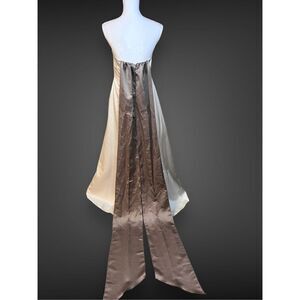 Bari Jay Womens Cream strapless ball gown with long mocha contrast train, NWT