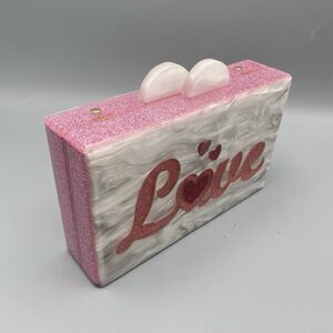 Bari Lynn Like / Love Acrylic Glitter Purse Crossbody Chain Clutch