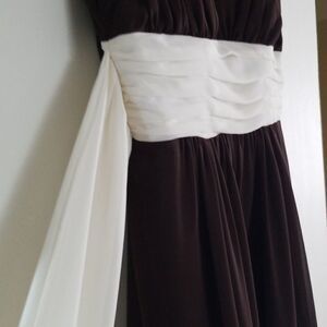 Beautiful Brown Bari Jay dress with white sash. Worn once, great condition. Bra inserts included