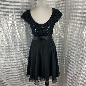 Bari Jay Sequin Cap Sleeve Chiffon Belted Dress