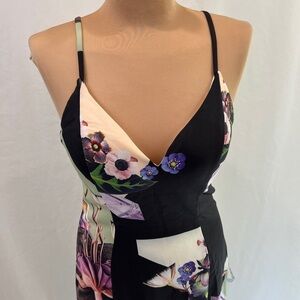 Bariano Australia Black Floral Tulip Hem Sheath MIDI Dress
