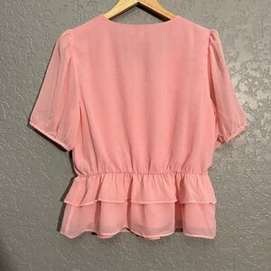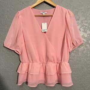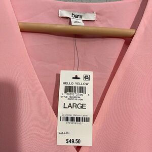 Elevate your wardrobe with this gorgeous pink Bar III peplum blouse, perfect for any occasion. The top features a flattering peplum design that accentuates your curves and adds a touch of feminine charm. The blouse is made from high-quality materials, ensuring comfort and durability. This stylish blouse is suitable for any casual or formal event, and it's versatile enough to mix and match with different accessories for a unique look every time. The size is a regular fit for women, with a large size that guarantees a perfect fit for most body types. The color is a beautiful shade of pink that complements any skin tone, and the brand is known for its quality and style. Add this Bar III peplum blouse to your collection today and experience the difference it makes in your wardrobe.