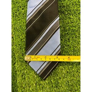 Baritone Striped Necktie Black Blue Modern Professional Business Casual Silk
