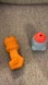 These are two toys from the well known Bark box brand. I ordered them from the large dog super chewer set. They are brand new. My dog is not interested in toys. They are very well-made and expensive toys. The first is the Bark Box Super Chewer “Scurry“ dog toy part of the Squirly collection. Made from durable orange rubber material however it is very hard to the touch. This is since it was designed for the super chewer. It has many textures for a pleasant chewing experience for the dog. The second is the Major Non’s Rocket dog toy. Made of durable rubber design for tough chewers. Features a treat dispensing hollow core. Includes an embedded squeaker and a wacky bounce. The toy is BPA free and dishwasher safe.