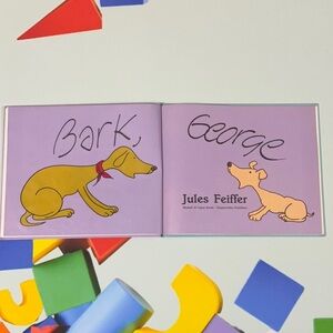 Bark, George by Jules Feiffer. Gently used children’s book with light signs of wear. Please note there are signs of wear through the pages from reading. Hard cover book