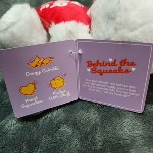 Your pup will grrrrrrin and bear this adorably grumpy teddy. And for dogs who like to chew on fluff, this overstuffed bear says, “eat my heart out!”