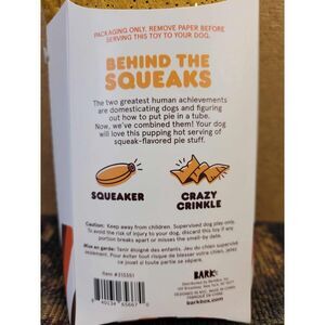 The two greatest human achievements are domesticating dogs and figuring out how to put pie in a tube. Now, we’ve combined them! Your dog will love this pupping hot serving of squeak-flavored pie stuff.