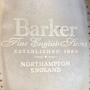 Barker Slip On Loafers Handmade in England Business Casual Dress Down Formal Moccasin Laced Toe Gold Tone Metal Horsebit Shoes Men’s Sz 8 1/2