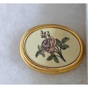 Barlow Oval Rose Floral Pin Brooch With Gold Tone Trim