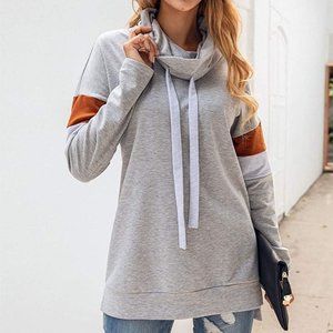 Barlver Womens Zip up Hoodie Color Block Cowl Neck Drawstring Hooded Sweatshirt