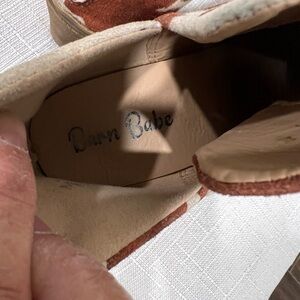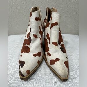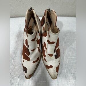 Barn Babe Brown & White Cow Print Ankle Boots With Stacked Leather Heel, Size 6