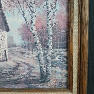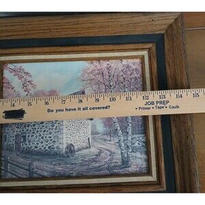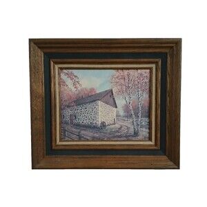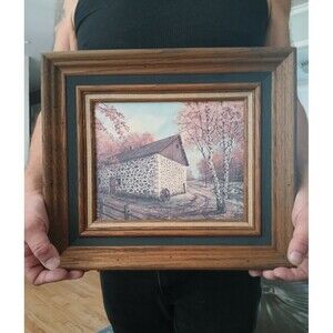Barn Farmhouse Country Rustic Art Print on board Signed 1974 Wood Frame 13x15"