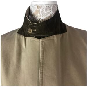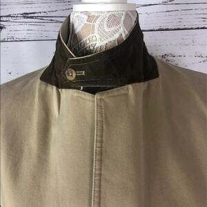 Barn coat stand collar patch elbow Khaki Lands' End 100% cotton 44 R