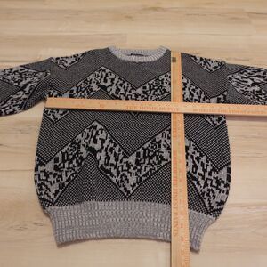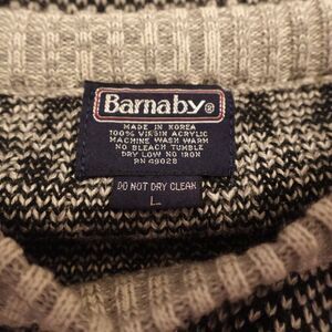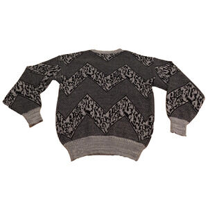 Barnaby Men Large Sweater Knit Crewneck Pullover Gray Chevron VTG Grandpa 80s