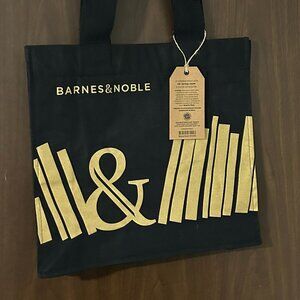 Barnes & Noble Book Tote Bag 100% Organic Cotton Black and Gold NWT