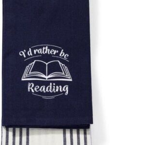 Barnes & Noble I'd Rather Be Reading Set of 2 Bar / Tea Towels Blue White NWT