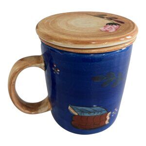 Barnes & Noble Mug – Royal Blue Floral Roses Books – Hand Painted Ceramic Tea Mug with Infuser & Lid