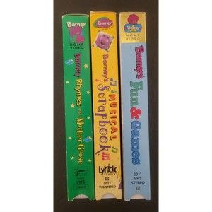 Bring home the joy of Barney the Purple Dinosaur with this lot of three VHS tapes! Perfect for fans of the beloved TV show "Barney," these tapes are a must-have for any collector of classic children's entertainment. Each tape features hours of wholesome fun for the whole family. Don't miss out on the chance to relive the adventures of Barney and his friends!