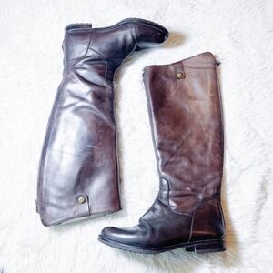 Barney's Chocolate Brown Knee High Riding Boot Brass Details SZ36