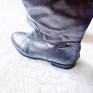 Barney's Chocolate Brown Knee High Riding Boot Brass Details SZ36