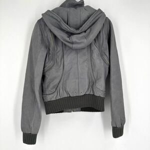 Barney’s Gray Leather hooded convertible jacket moto Helena Christensen small