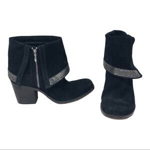 Barneys New York CO-OP Black Suede Booties with Metal Stud Detail