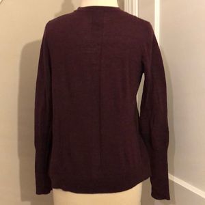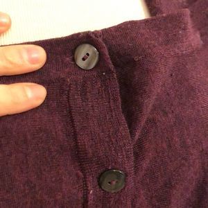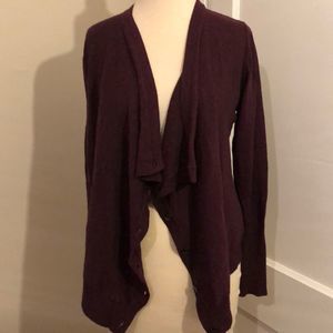 Maroon cardigan that can be worn open or closed. Fine Marino wool. Size small