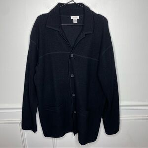 Barneys New York 100% Wool Black Cardigan Longline Jacket Womens L