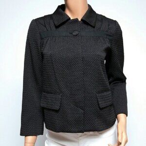 Barneys New York Cape Jacket L Black Woven Texture Luxury Herringbone