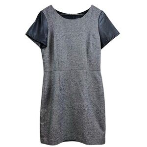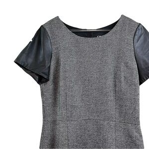 Barneys New York Co-Op Wool Leather Tweed Knit Dress Career Gray Black Size 12