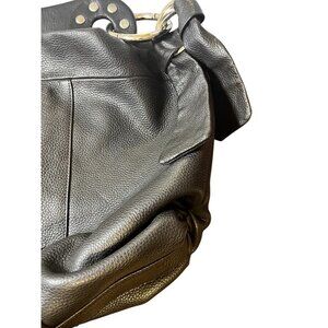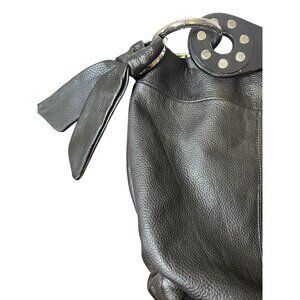 Barneys New York Leather Bag L Black Studded Neutral Pebbled Slouchy Chic 80s
