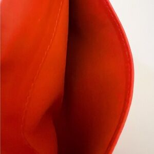 The Barneys New York Orange Envelope Leather Fold Over Wallet Clutch Purse is a stylish accessory designed for women. Made by the prestigious brand Barneys New York, this wallet features a vibrant orange color and a sleek envelope design. Perfect for storing cash, cards, and other essentials, this wallet combines practicality with high-end fashion, making it a must-have for those who appreciate quality and sophistication in their accessories.