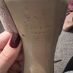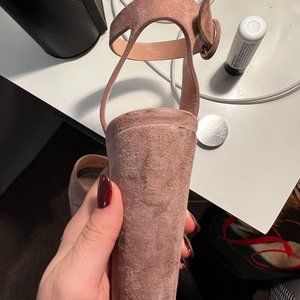 Mauve pink suede platform sandal heels