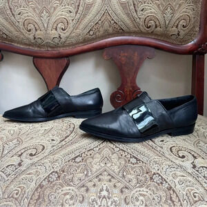 Barneys New York Women’s Black Leather Strap Loafers Flats Size 7 Made in Italy