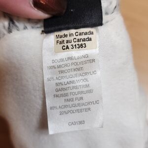 Heather grey knit: 50% wool 50% acrylic