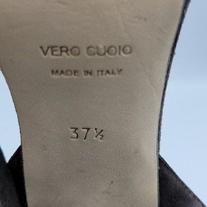 Barneys New York block heel ankle strap mink fur heels Sz 37.5 Dark Grey