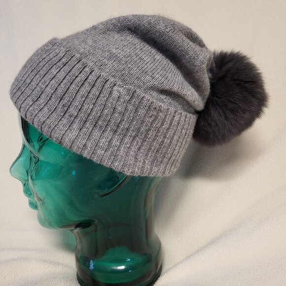 Barneys New York cashmere and wool stocking hat with fur pompom. Adult size.